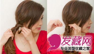 ¡¡¡¡Step3£º½«ÏÂÃæÂíβ´¦µÄÍ··¢·ÖÒ»²¿·Ö³öÀ´£¬Î§×ÅÏðÆ¤½îÔúסµÄµØ·½ÈÆÈ¦£¬½«½«Æ¤½îÕÚס£¬È»ºóÓÃС·¢¿¨¹Ì¶¨×¡¡£