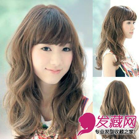 暖暖棕褐色的公主式大波浪卷发娇媚不已,加上特地制造出的蓬松感,这款发型只能用清纯灵雅来形容了,美眉们赶紧试试。