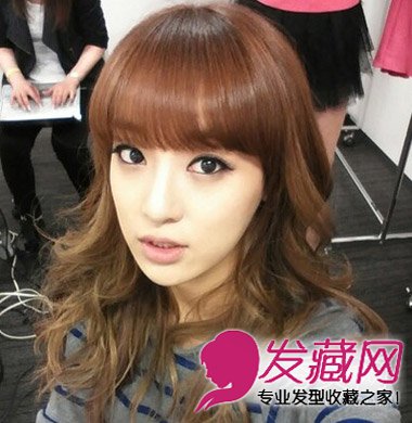 这款韩式烫卷长发发型也是很适合约会的气质发型,打薄的碎斜刘海修颜又显甜美知性气质,搭配修颜瘦脸的齐刘海,精致妆容甜美娇俏。
