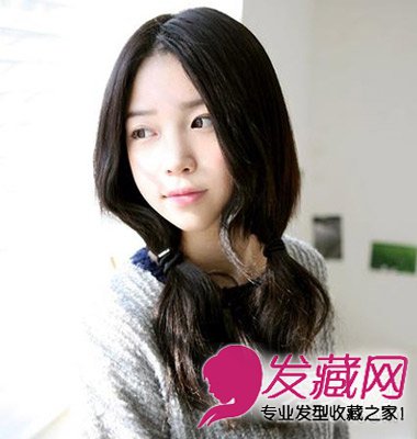中分长发也可以打造出很有淑女气质的造型,乌黑的长发在颈间随意扎两个发辫,中分长刘海超瘦脸。