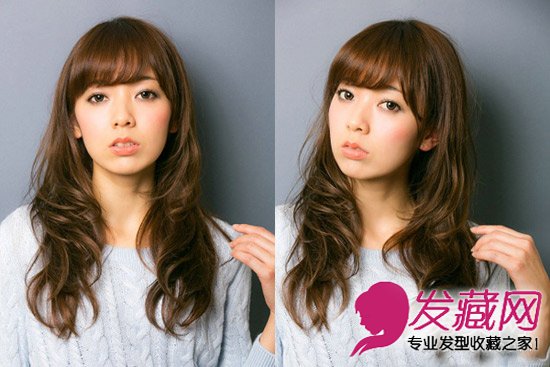 烫发刘海搭配蓬松的长卷发,减龄效果明显。