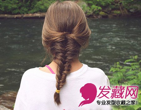 甜美又简约的鱼骨辫看上去普通却很吸睛,精致的发髻需要费一番功夫,栗棕色的染发,一个背影散发出乖巧感。