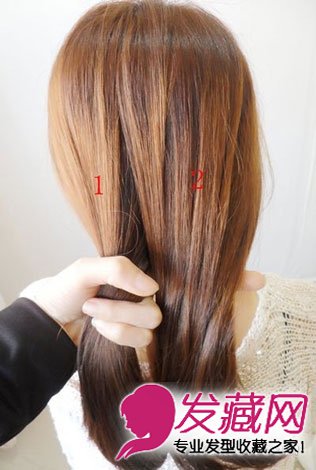 先将头发分成2分哦,对应的上面标了数字,为了方便大家看清楚