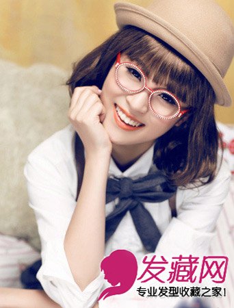 活泼感十足的短卷发,古铜色的染发显得极为光泽,卡其色的圆顶小礼帽可爱俏皮。配上女生大大的微笑,阳光十足。