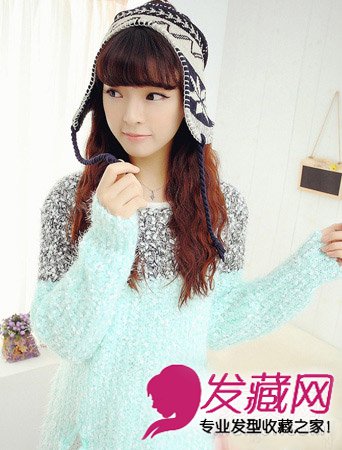 蓬松的齐刘海,可爱俏皮的玉米烫,再配上雪花文案的毛绒帽子,萌点十足的造型。