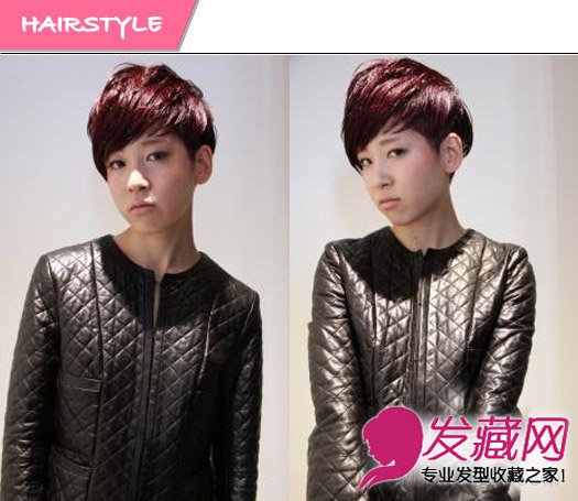 中性的短发搭配酒红色染发,让女生看上去十分帅气,走朋克风的姑娘可以大胆的尝试一下。