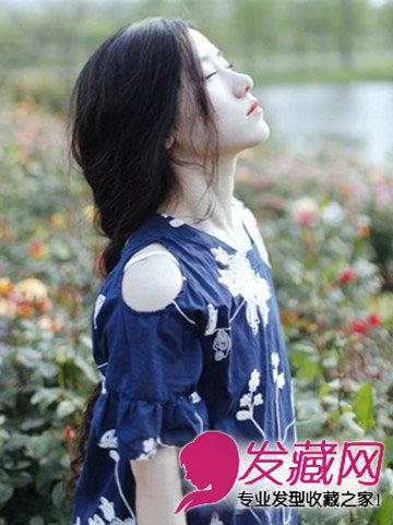 清新简约的森女系长发扎发,中分的长发扎蓬松的发辫造型,发丝微微凌乱的造型很有随意的田园气息。