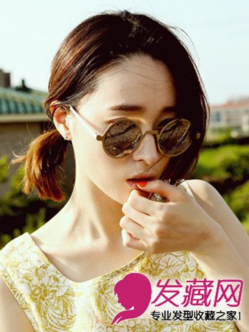 适合齐肩发MM打理的一款简单韩式发型扎法,在脑后扎简单的短马尾辫很有俏皮清新气质,侧分的长刘海自然垂落,修颜瘦脸。