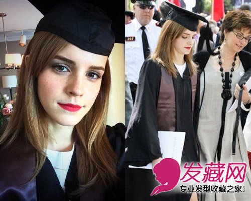 今年5月底,《哈利波特》中赫敏的扮演者艾玛·沃特森也能晒出自己的毕业照,与别人的素颜相比,一袭红唇的很是抢镜。金棕色的披肩长发发型甜美而又不失时尚。