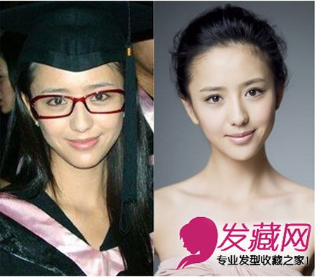 佟丽娅的毕业照充满了学术气息,黑色的长直发,带着眼睛的样子像个学究。