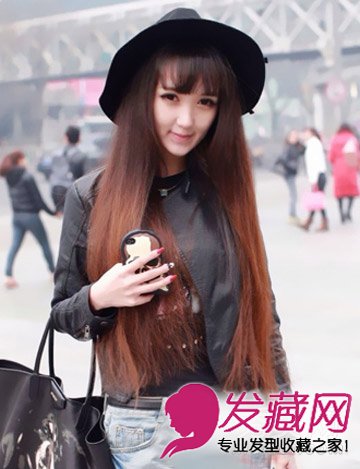 金棕色的长发保持着垂顺的直发效果,配合韩式的空气感刘海凸显好气质,礼帽潮装,时尚吸睛。