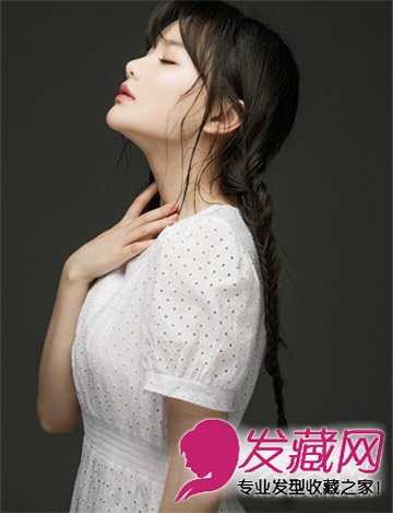 简单编织起的四股辫,精致迷人,为长发增添无限魅力,简单的发辫,一身甜美的白色连衣裙,校园萌妹子范。