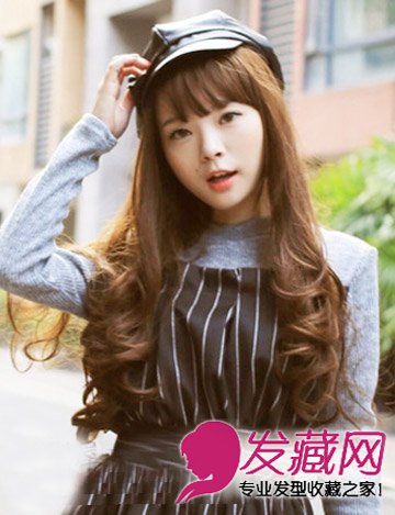 唯美时尚的长卷发发型瞬间提升女生的气场感,浪漫的波浪卷度灵动优雅,可爱的齐刘海遮住大额头,打造上镜鹅蛋脸型,秋日率性着装简约大方。