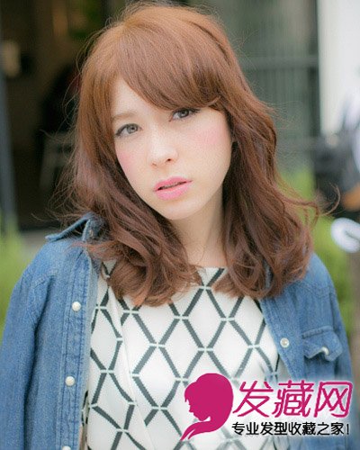 卷度适中的卷发能提升成熟气质,斜刘海更好的突出脸型,棕色发色显得肤色更加白皙。