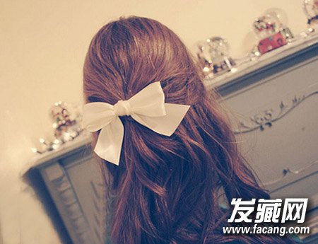 发型:韩式公主头发型也是扎发的甜美直选,微卷的秀发,用蝴蝶结绑扎在发间,散发出温柔淑女气息。