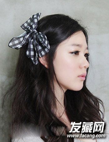 披肩的长发也是最能营造出淑女气息的发型,微卷的秀发,侧边头发佩戴可爱的波点蝴蝶结,瞬间变身可爱萌妹。