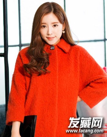 再是一款清新淑女范十足的女生可爱长发发型,这种只是简单的将长发发梢做上丰盈蓬松式的烫发造型来增添女生物活泼可爱感,而配合的温暖的咖啡色染发与气质型的偏分造型更显女生的优雅温柔感。