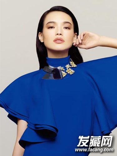 黑色亮丽长发自然披肩,无刘海造型显示好看脸庞,搭配精致妆容看起来很有时尚潮流范。