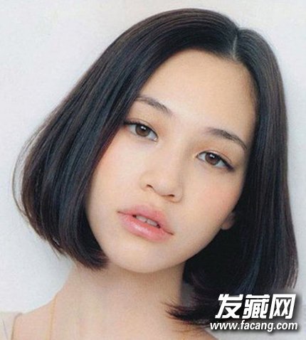 把bob头修剪成后面短前面长的形状可以让脸看上去小一些,将头发中分,两侧的头发能拉长脸型。类似图上水原希子这一款,是很多姑娘模仿的人气发型之一。