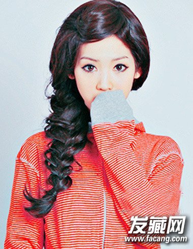 发量多的妹纸做萌女发型简单大方,小发夹和浓密发色的搭配永远不会out,梳柔顺斜刘海,黑色小发夹给刘海波浪一样的弧线,侧梳的长卷发从肩头开始编麻花辫,固定好后的麻花辫用手指拉出毛碎发丝,宽麻花像鱼尾一样有型。