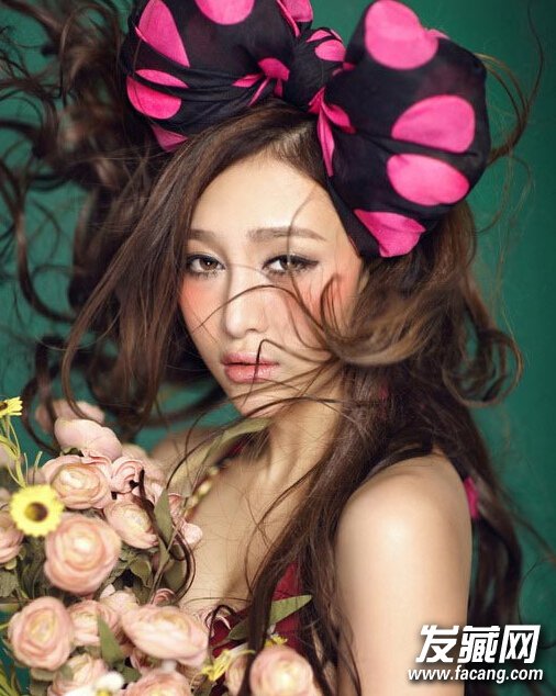 染发设计,轻松打造出优雅百变造型,戴上夸张的蝴蝶结,别具一种时尚风。