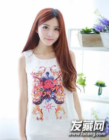 同样是一款暖色系染发的女生偏分长发发型,清新飘逸的长直发造型可是最显女生的清纯气质感的,发梢微微的烫发造型更添活力感,温暖的棕红色染发时尚还有衬托女生肤色白皙的效果。