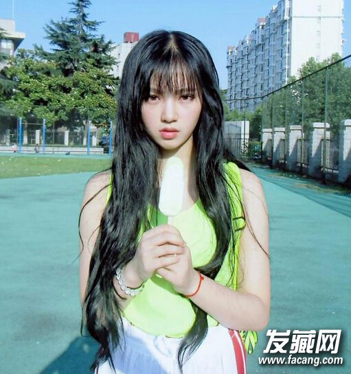 1、武大女神黄灿灿有一头漂亮的及腰长发,配上精致小脸蛋,怎么看都美,空气薄刘海轻盈又小清新,自然弯曲的长发给人随性气质感,和精致小脸搭配刚刚好。