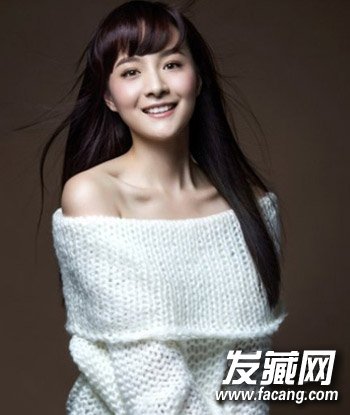 写真中长发发型,圆弧型的刘海很显学生气,披肩长直发自然清纯,甜美笑容很具感染力。