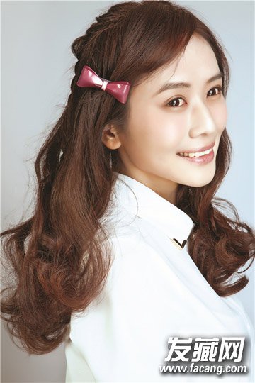 完成图 小清新的编发搭配披肩发很显浪漫气质,红色蝴蝶结点缀,增加甜蜜感。