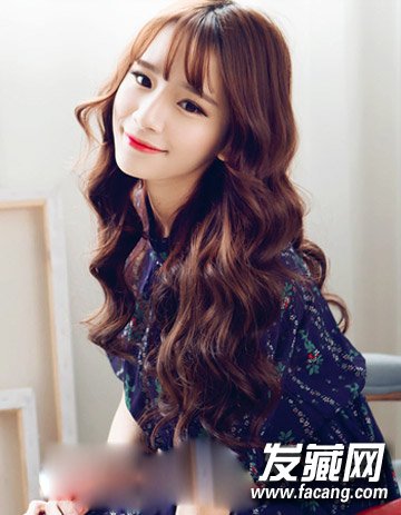 首先是一款气质的大卷发型,甜美的空气刘海加上个性的麦穗烫发显露出无比的时尚感来,一改长发的单调与普通,显露出时尚而且有气质的一面。