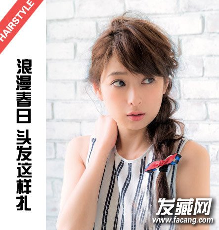 发型点评:前额的长刘海层次感饱满,厚重的设计达到完美的修颜效果。长发扭转成发辫后摆动在肩头,简约而清新。