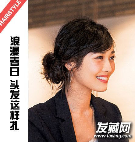 发型点评:黑色卷发散发出优雅的清新感,随意扭转的侧边花苞头稍显凌乱,打造出优雅甜美的气质。