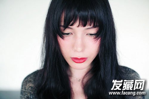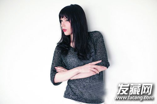 发型厚重,质感轻盈是最新长发发型的铁则!宽宽的刘海两端留得长一些,且粗犷的发束感营造出摩登感。为了突出秋天气息选择深酒红色染发,衬托出肌肤的白皙。