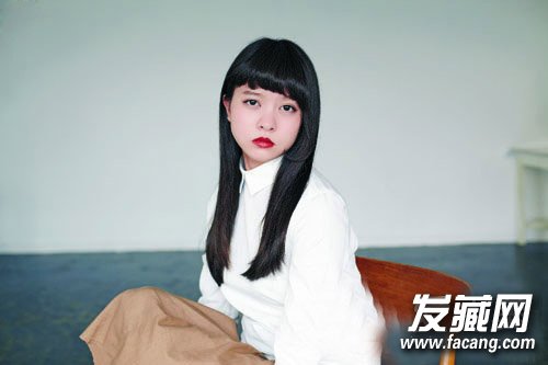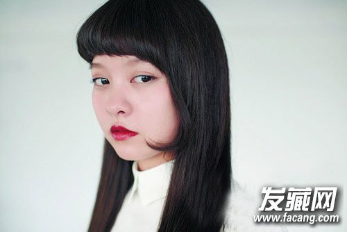 直直的长发柔顺的让人禁不住想要触摸。避免显得软趴趴的感觉,错开中心剪出不对称的刘海,脸部周围发束卷成发卷。深灰色的自然深浅色使时髦度急速上升。