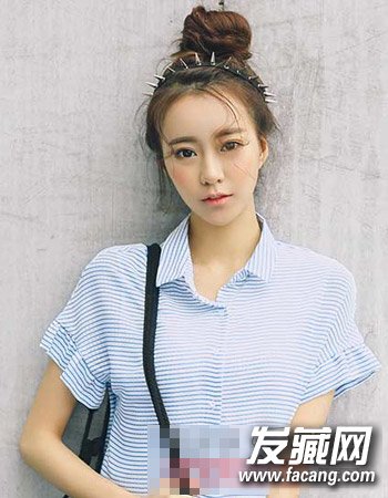 利用的是清新自然的棕色染发设计,再配合这种简单的高耸花苞头扎发设计,清新自然的无刘海造型设计与独特的发箍造型相搭,清爽中更添活力感。