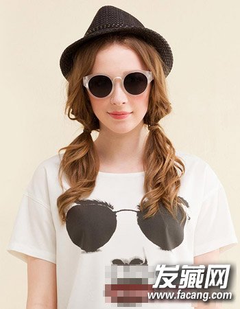 简单的中分造型设计时尚吸睛,配合活力十足的棕黄染发设计与简单的双马尾扎发造型,蓬松的烫发设计更添时尚感,而且还有简单的修颜效果。