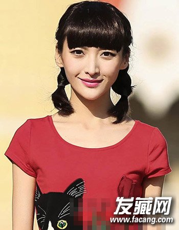 再是一款同样简单的15年夏季魅力扎发发型,简单清样的发色自然迷人,与厚重的齐刘海相搭,再配合清简单的双马尾扎发设计更添清新田园风。