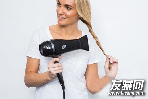 1、选择一撮头发卷成螺旋状备用,然后用吹风机开热风吹定型。