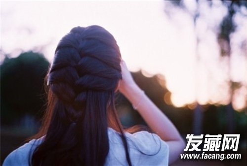 编发与半扎发相结合也是长发妹子很爱的一种扎法,层次分明的蜈蚣辫编发配上披肩发,背影就已经甜的没话说。