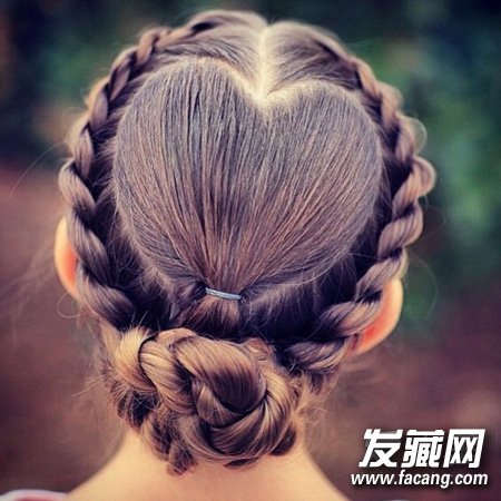 精致编发发型,这样一款编发还能不秒杀你!花环编发和盘发相结合,形成一种很赞的心型编发的效果,背后看好精致。