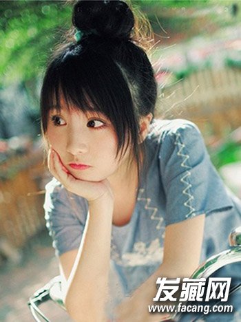 MM们日常最爱打理的一款韩式简单扎发,高扎到发顶的发髻很有显高显瘦的效果,搭配打薄的斜刘海更显脸瘦。