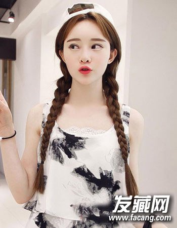 时尚的中分造型设计一直以来都是小女生们的最爱,再配合这种简单低调的棕色染发更添清新自然事情,而无刘海形式的及腰长直发双马尾辫编发设计更添清纯可爱风。