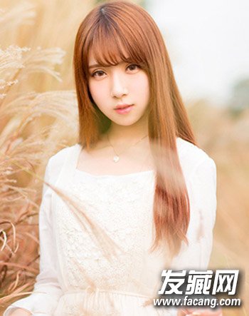 简约时尚的一款棕色长发发型,清新唯美,彰显了女生可爱纯情的姿态,空气感刘海设计也是今年很流行的一款发型设计风格哦!