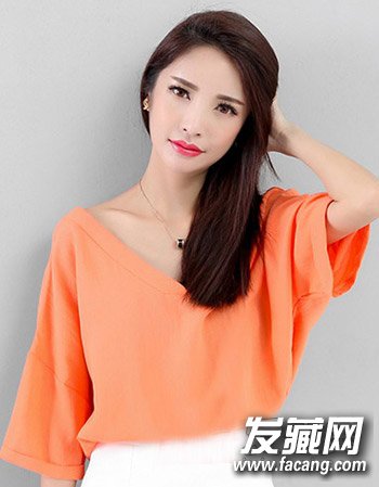 清爽的露额发型的设计打造出别致的时尚感来,而且柔顺的中长直发发型与一九分的造型勾勒出无刘海发型的设计来,柔顺十足。