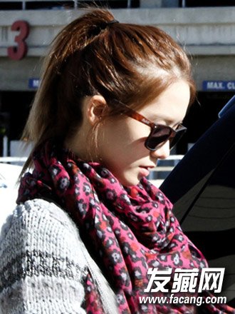 韩系MM最爱的一款马尾辫扎发,露额的无刘海发型扎发清爽自然,棕色染发衬托出白皙水嫩的肤色,很适合MM们夏季打理。