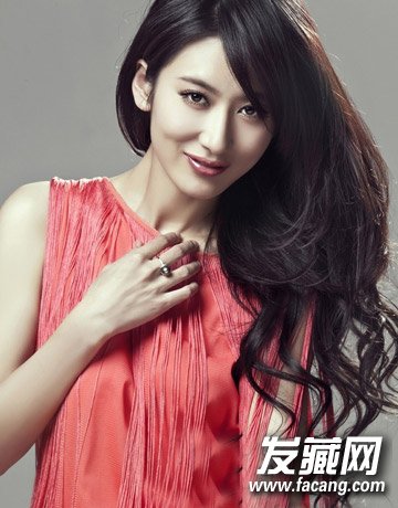 妩媚的侧边长卷发很自然的挡住了侧脸散发优雅女人味,丰盈的波浪卷,三七分的刘海勾出最完美的五官,礼服更显高贵。