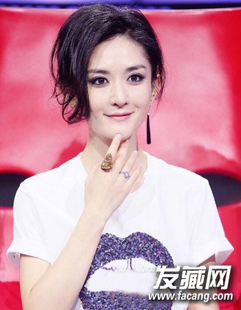 平常我们看到的娜姐都是清浅的妆容,但浓妆艳抹的谢娜的这款造型同样很显迷人气质感哦,偏分形式的蓬松黑色盘发造型尽显十足女人味。