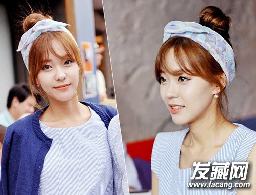 花苞丸子头搭配一条田园风情的发带绝对可以秒变甜美小公举哟!