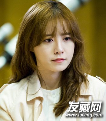 这款时下非常流行的韩式中长卷发是MM们的首选,中长发丝烫出细密的卷度,染发颜色让发丝很有质感,搭配碎剪的齐刘海,修饰出精致的瓜子脸。