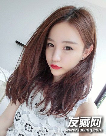 同样是一款清新学院风形式的2015韩式齐肩发型设计,浅棕色染发设计清新迷人,而中分形式的碎发中长发造型设计更添十足的清新甜美风。